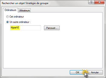 Avec ServerName1 étant le nom du serveur Hyper-V que l'on veut administrer.