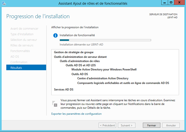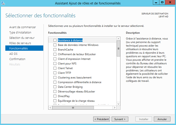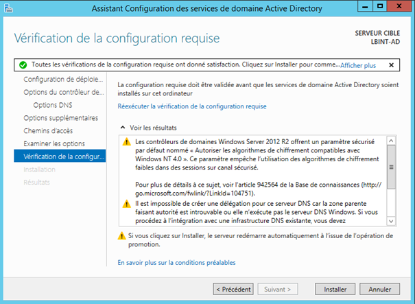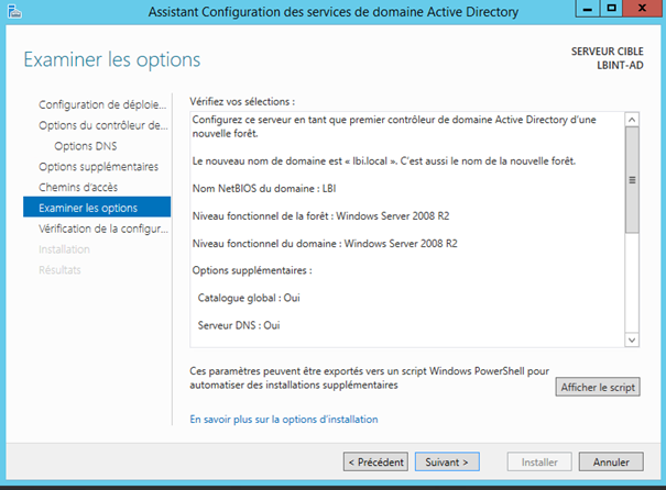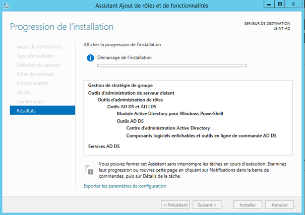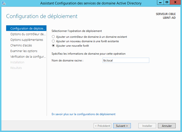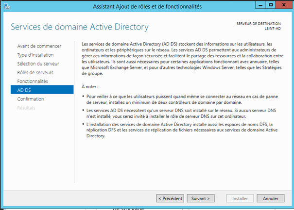 Viens ensuite la configuration de l'AD à proprement parlé….