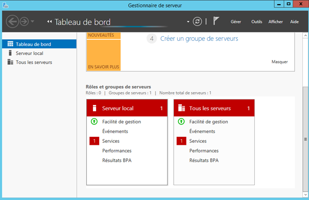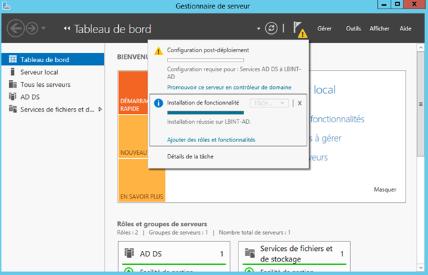 La console Gestionnaire de serveur nous informe des tâches restantes …
