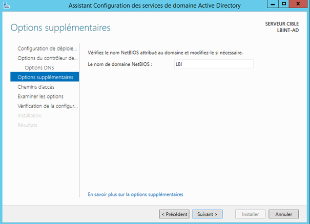 Valider le nom Netbios et validez en cliquant sur Suivant