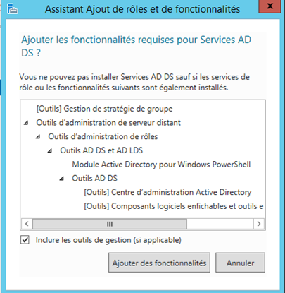 Accepter l'installation des prérequis en cliquant sur Ajouter des fonctionnalités