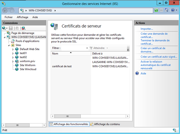 A ce stade on va créer un certificat SSL pour le site www.wincloud.lan