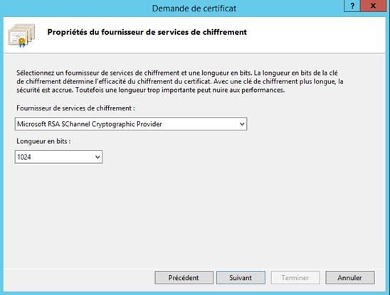 Sur cet écran on peut éventuellement choisir une longueur de clef de 2048 bits.