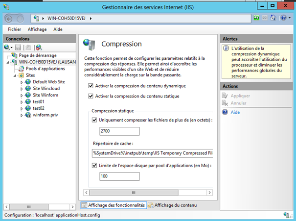 Activez si nécessaire la possibilité d'avoir la compression statique et dynamique sur les sites Web.