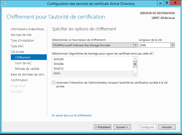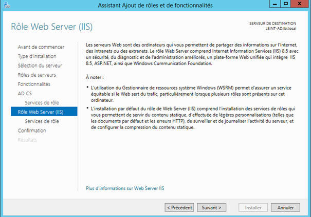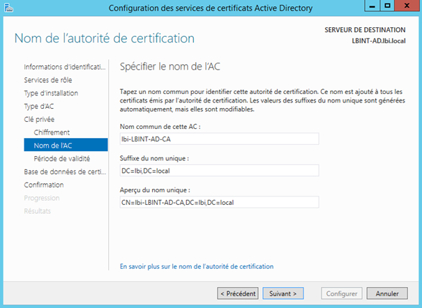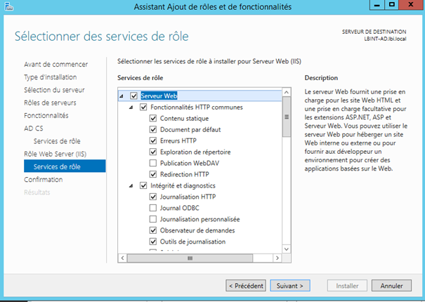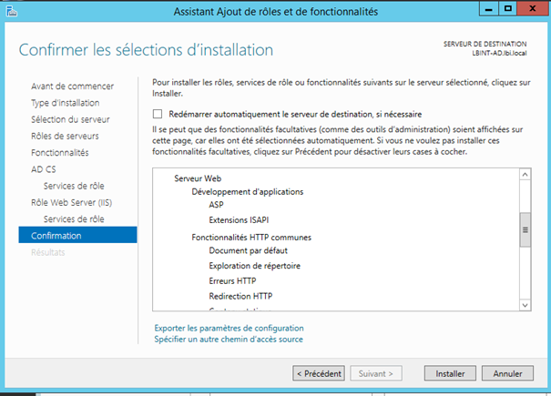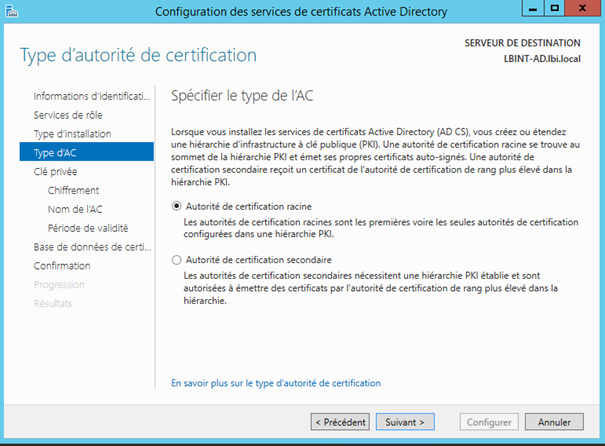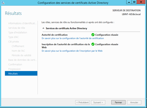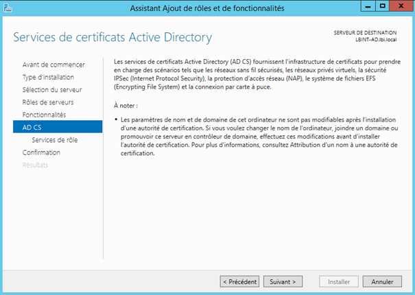 | Installation du serveur AD CS ( Serveur de certificat )