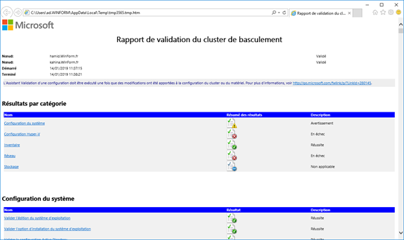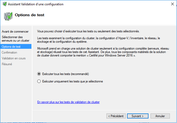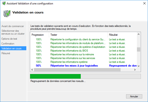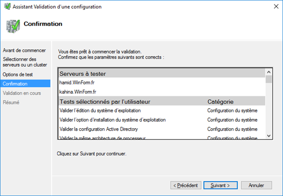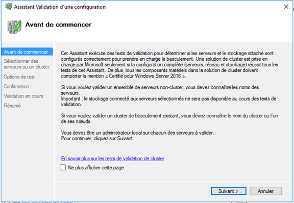 On démarre alors un assistant qui va vérifier la bonne configuration des différents nœuds du cluster