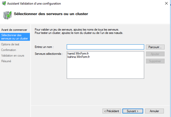 A ce stade on rentre les nom des machines que l'on souhaite ajouter dans le cluster