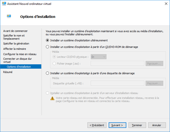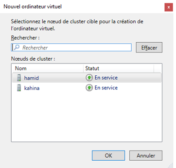 On va créer les ordinateurs virtuels à partir de la console de Cluster et non à partir de la console HYPERV