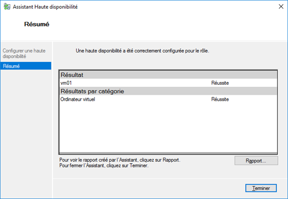 Il faut par contre préciser que la VM est hébergé sur un stockage du cluster.