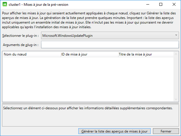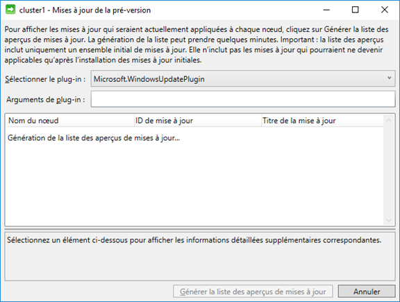 On clique ensuite sur Générer la liste des aperçus de mises à jours.