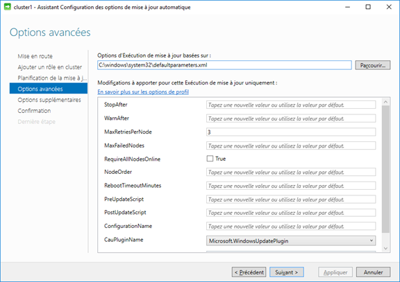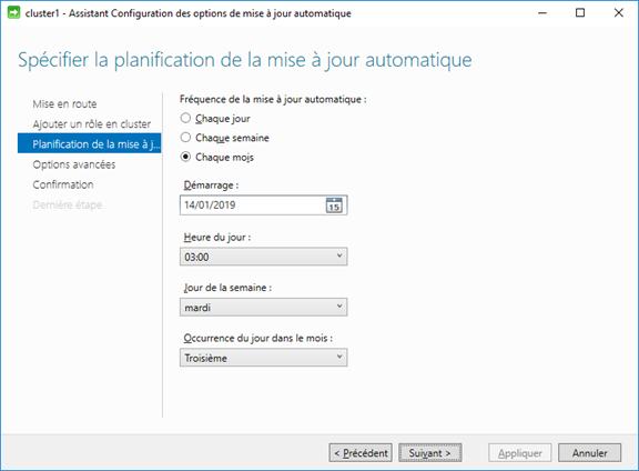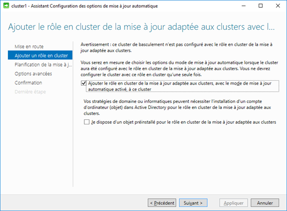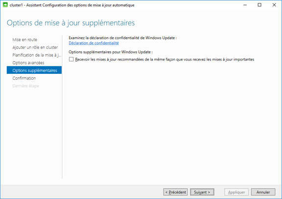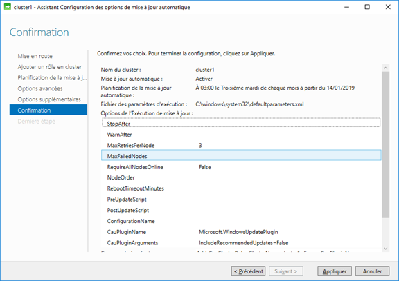Mise à jour WindowsUpdate sur les nœuds du cluster ( Cluster-Aware Updating = CAU)