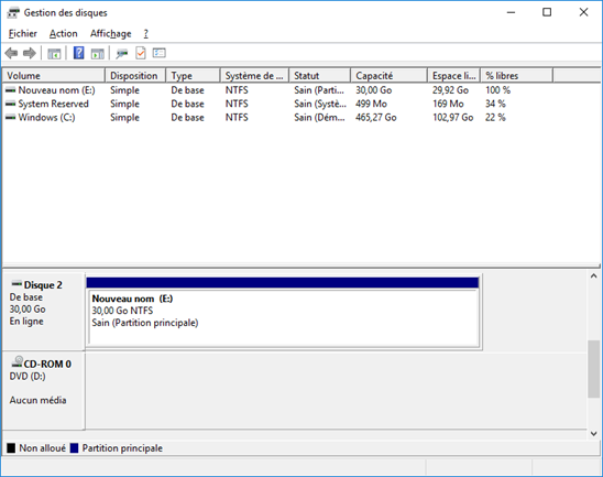 On découpe notre disque en un seul volume et on le formatte en NTFS ou en REFS