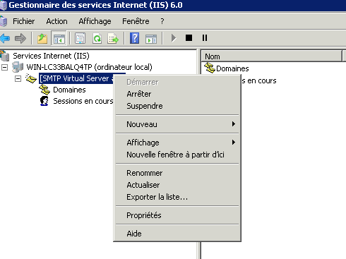 Dans les outils d'administration, lancer la console Gestionnaire des services Internet ( IIS) 6.0 pour administrer le service SMTP.