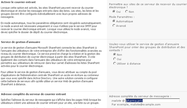 Mise en œuvre du courrier entrant sur le serveur SharePoint
