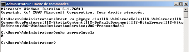 | [SRV1]Installer IIS depuis la ligne de commande.