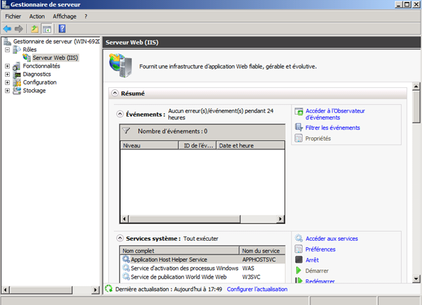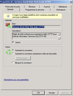 Vérifier l'absence de règle de pare feu active pour autoriser le port 80/443