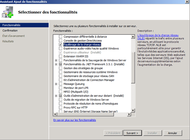 Dans l'assistant, sélectionnez la fonctionnalité Network Load Balancing puis cliquez sur Next, puis sur Install.